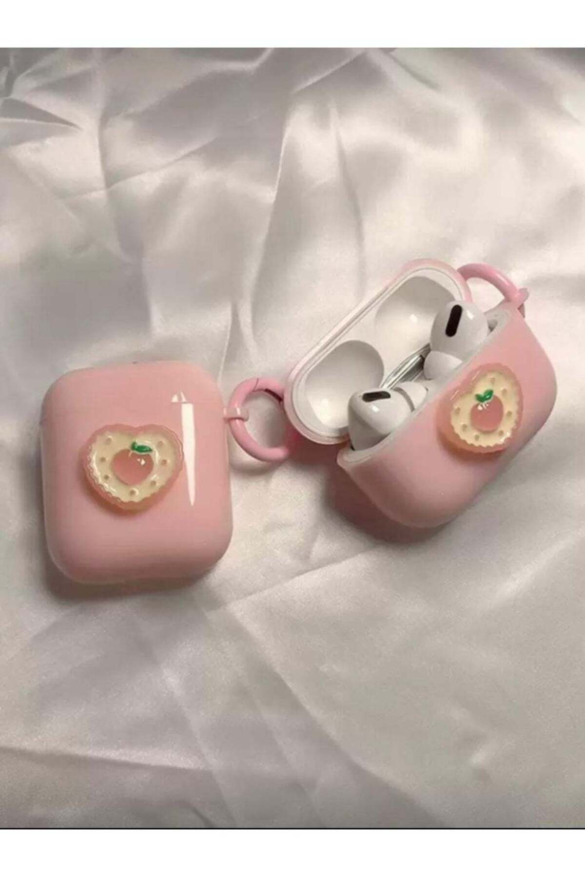 Cute peach cookie 3D design with a light pink tulip look.; Made from high-quality soft silicone/TPU for excellent grip and durability.; Slim, lightweight and portable — easy to carry in a pocket or bag.; Designed to fit AirPods 4 securely and snugly.; Specifications: Product weight 25 g; Height 2.5 cm; Length 6.5 cm; Width 5 cm.; Colour: Peach pink.; Country of origin: China.; Model number: Airpods 4. Number of pieces: 1..