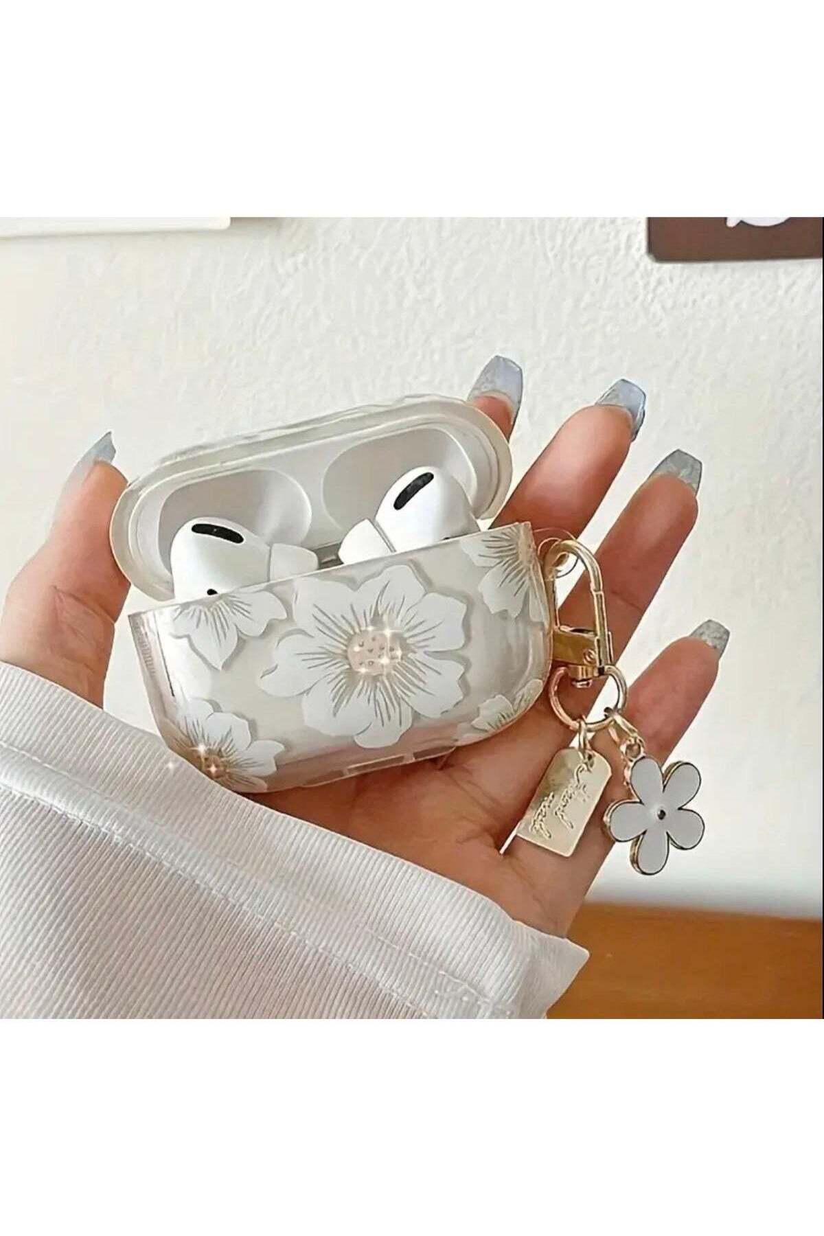 & Free ShippingHeadphone CasesGive your AirPods Pro 2 a fresh and stylish look with this elegant floral case.; Designed with a clear glossy finish and embossed white flowers, it combines beauty with practicality.; The case comes with a matching keychain and charm, making it easy to attach to your bag, keys, or belt loop while keeping your AirPods safe and secure.; Compatible with AirPods Pro 2, ensuring full access to charging port and wireless charging.; Transparent shell with 3D white flower patterns for a chic and feminine touch.; Made of premium TPU material to guard against scratches, dust, and daily drops.
