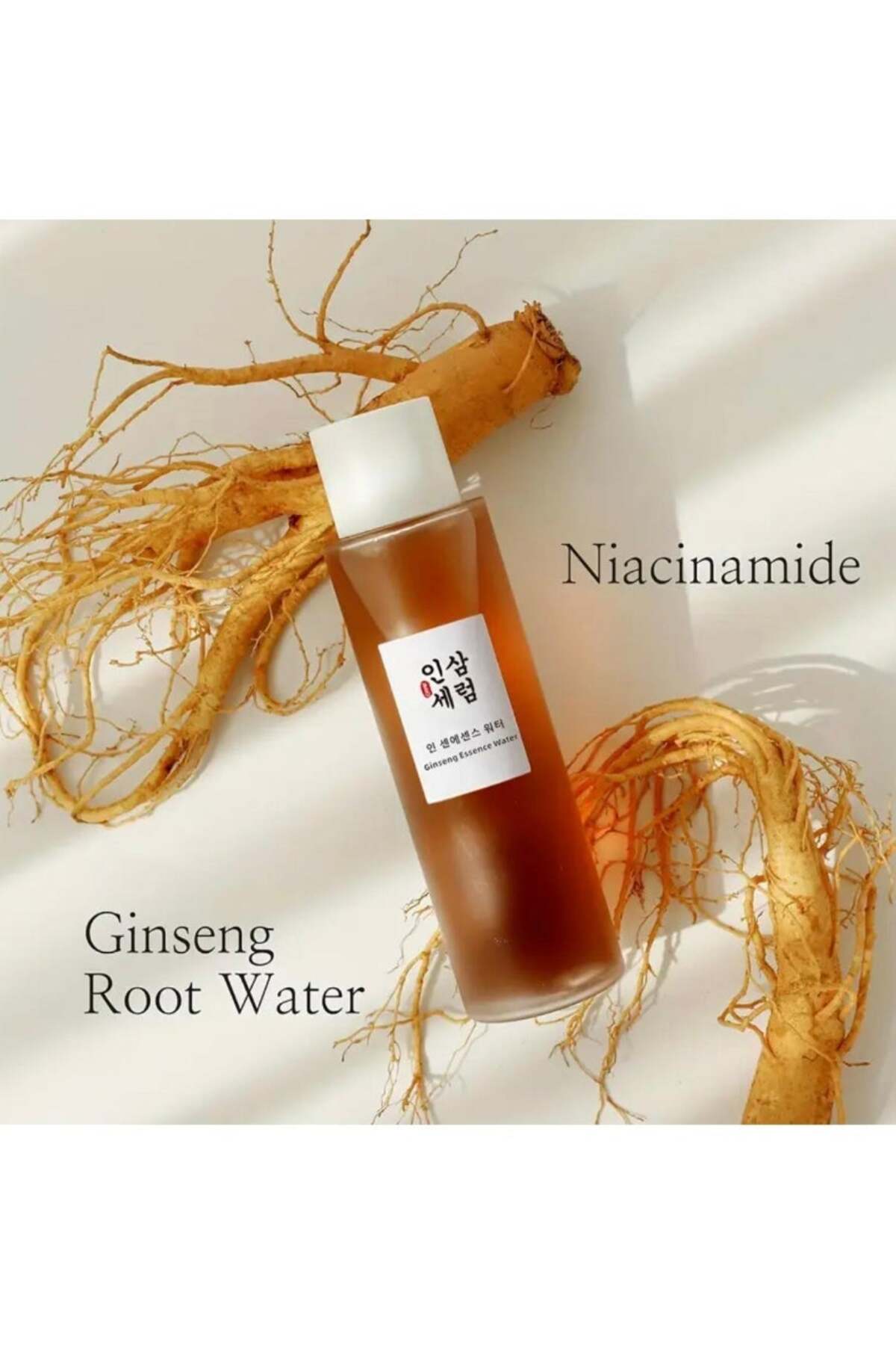 The Ginseng Essence Water is a refreshing, nourishing toner-essence hybrid that harnesses the ancient wisdom of Ginseng.; Formulated with a high concentration of Ginseng Root Water and modern brightening agents like Niacinamide, it acts as a vitalizing boost for dull, tired skin, restoring its natural glow and elasticity.; A versatile B-vitamin that helps control sebum, minimize the appearance of pores, and brighten the complexion.; Works to soothe the skin and provide anti-aging benefits by improving the appearance of fine lines.; Taps into the potency of Ginseng to deliver long-lasting moisture deep into the skin layers.; Nourishes the skin to promote a healthier, more vibrant look.; Helps refine the skin’s surface, leaving it feeling silky and soft.; Firms and ‘elasticizes’ the skin for a more youthful, bouncy feel.; The addition of Niacinamide ensures a balanced, refreshing finish without a greasy residue.