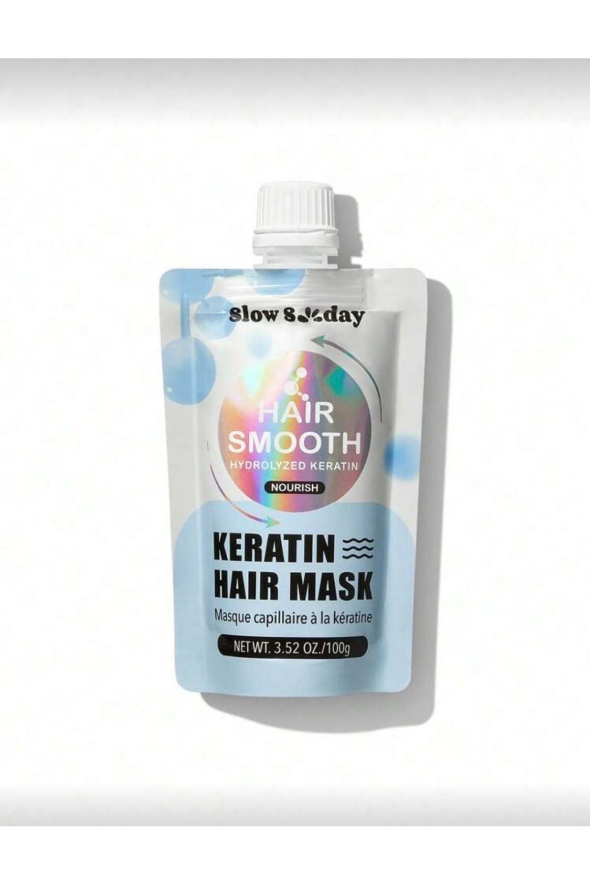 & Free ShippingHair MaskThe Slow Sunday Keratin Hair Mask (100g) is formulated for deep repair and hydration with hydrolyzed keratin.; It helps smooth hair, add shine, repair damage, improve manageability and protect against breakage.; Packaged in a pouch, this cream formulation is presented as a simple two-step treatment for use during or after shampooing.