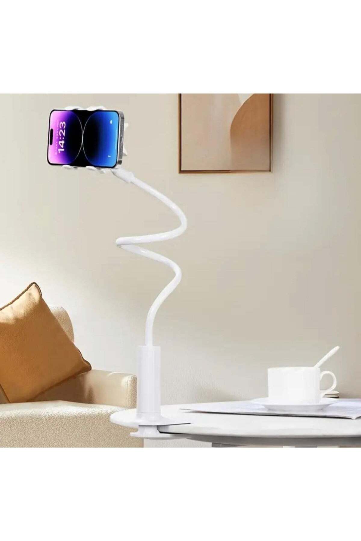 This is a Universal Flexible Gooseneck Phone Holder, often referred to as a ‘Lazy Bracket.; ‘ It is designed for hands-free smartphone use, allowing you to mount your device to tables, bedframes, or desks.; Equipped with a ball-joint ‘freely rotating’ connector, allowing you to switch between portrait and landscape modes effortlessly.; Unlike spring-loaded bases that can slip, this features a screw-tightening ‘Bolt Clamp’ that ensures a firm grip on surfaces like headboards or table edges.; The arm measures 72cm (28.34 inches), providing plenty of reach and the ability to bend the holder into various angles and shapes.; The ‘Fixed Clip’ at the top is designed to hold most modern smartphones securely.; The arm is rigid enough to hold the weight of a phone but flexible enough to be coiled for added support.