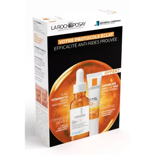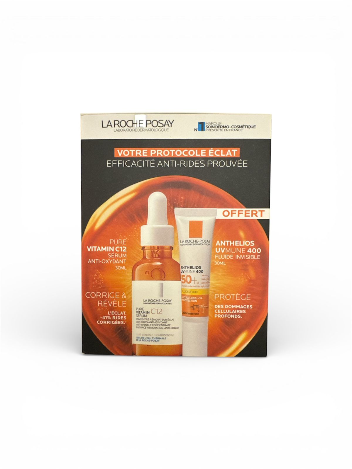 LA ROCHE-POSAY Pure Vitamin C12 Anti-Wrinkle Serum 30ml + Anthelios UVmune 400 Invisible Fluid SPF 50+ Fragrance-Free 15ml