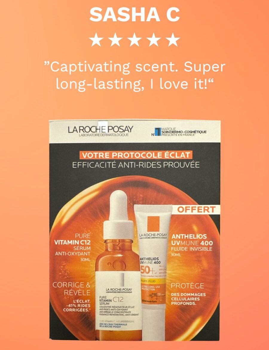 & Free ShippingBeauty ProductsThis La Roche-Posay set is ideal for sensitive skin looking to combine sun protection and anti-aging care. The Pure Vitamin C12 Anti-Wrinkle Serum, enriched with 12% pure vitamin C, smooths wrinkles and fine lines, evens out skin tone, and reveals your skin’s natural radiance. Salicylic acid unclogs pores and refines skin texture, while neurosensine soothes and rehydrates. In addition, the Anthelios UVmune 400 Invisible Fluid SPF50+ provides broad-spectrum sun protection against UVA/UVB rays, even in extreme sunlight. Its light, non-greasy texture is ideal for reactive or sun-intolerant skin. Enjoy smoother, more radiant, and protected skin every day.