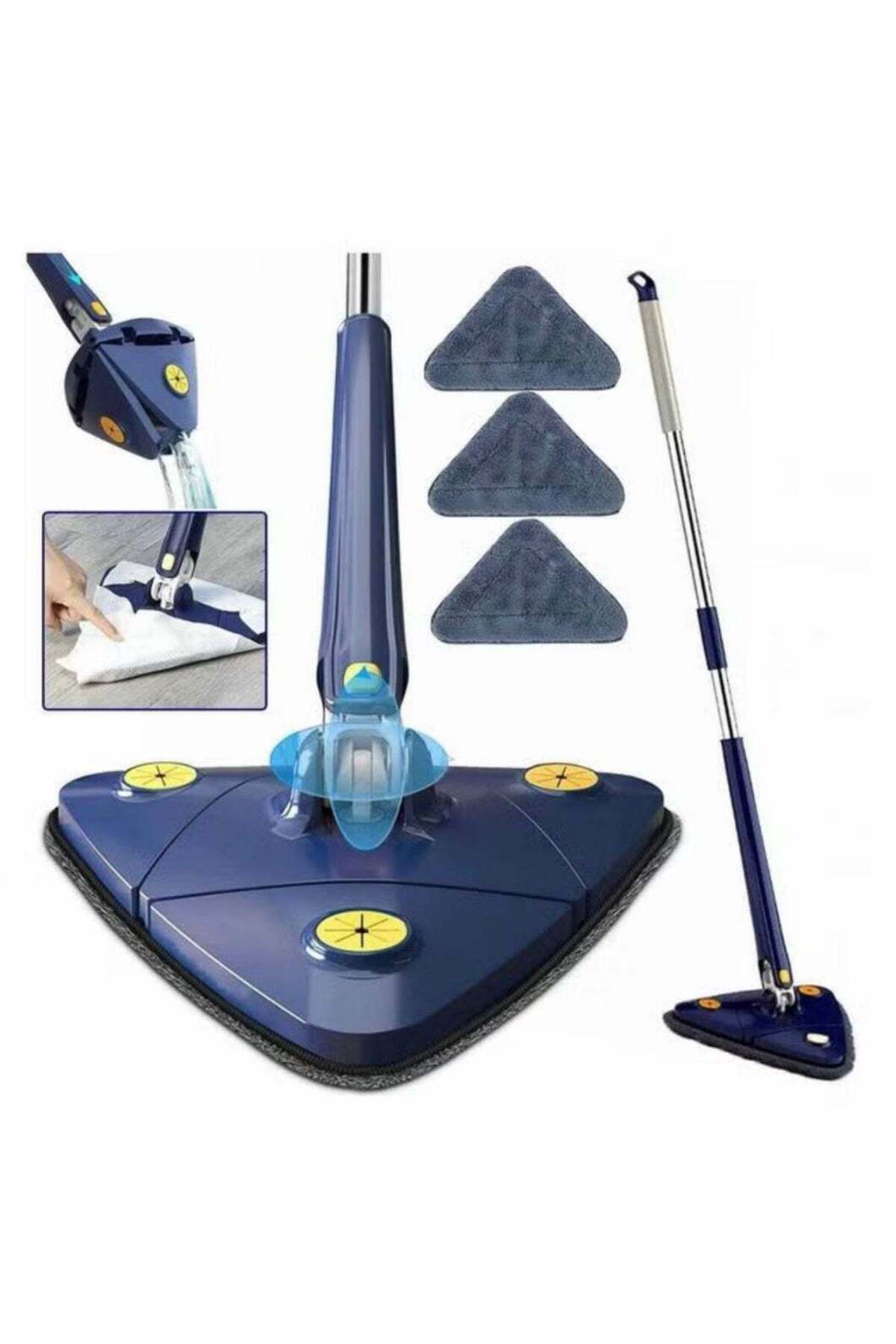 Triangle 360° Rotating Cleaning Mop - Long Handle, Hands-free Squeeze, Wet/DryTriangle 360° Rotating Cleaning Mop – Long Handle, Hands-free Squeeze, Wet/Dry